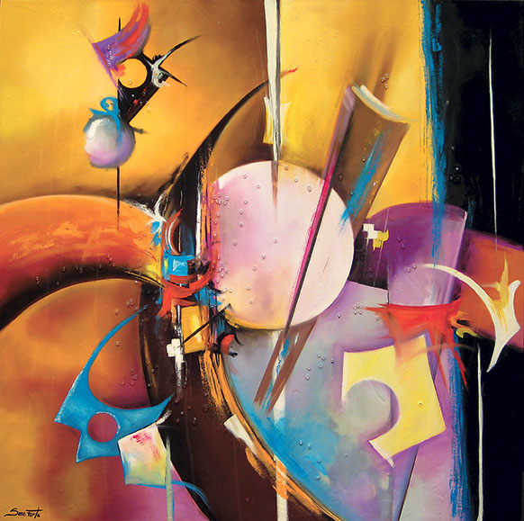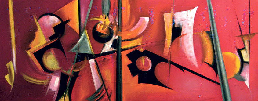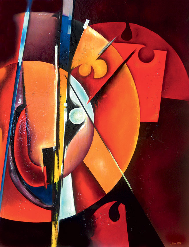 A visual reflection on the world and the forces that traverse it, abstract compositions that are fluid and vibrant, narrating the present with a gaze that unites memory and innovation, spirituality and matter, painting and research.