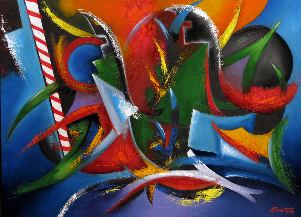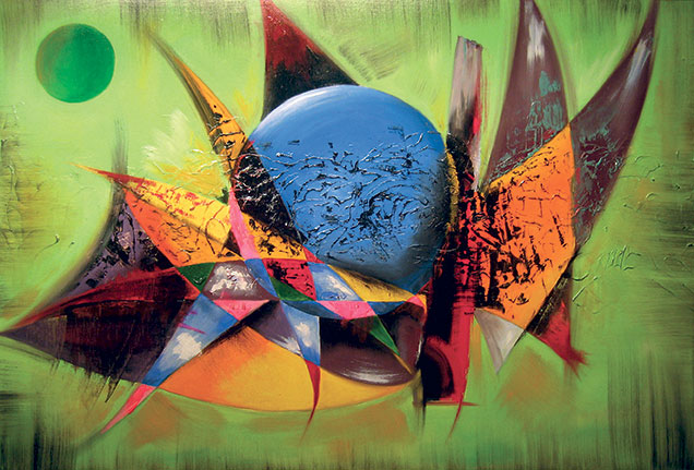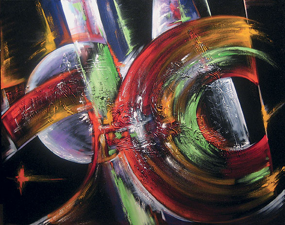 Una riflessione visiva sul mondo e sulle forze che lo attraversano, composizioni astratte, fluide e vibranti che raccontano il presente con uno sguardo che unisce memoria e innovazione, spiritualità e materia, pittura e ricerca.